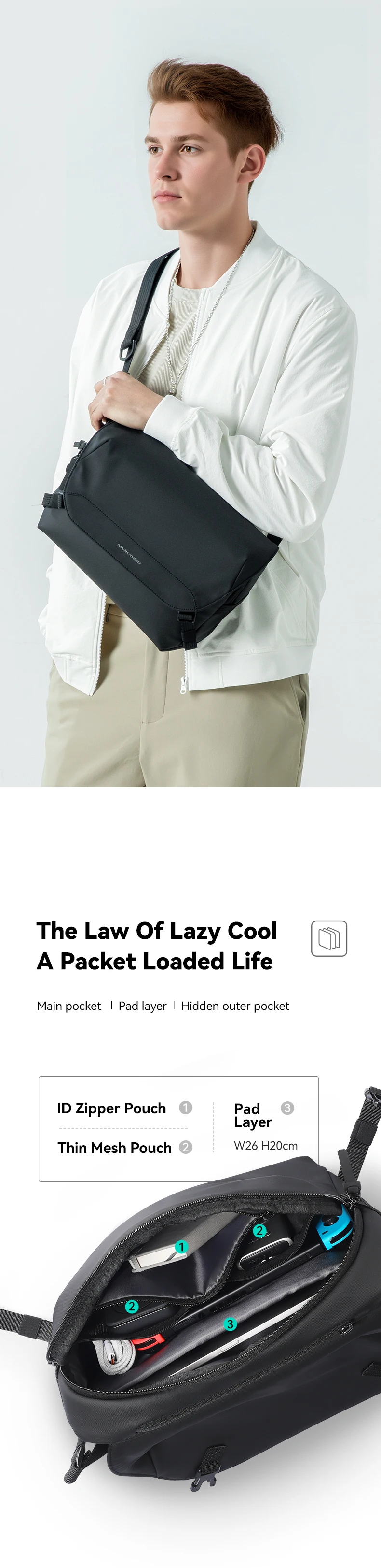 Light as a feather at just 500 grams, the sling bag eliminates unnecessary weight while offering maximum durability. Its ergonomic design adjusts effortlessly for a secure and comfortable fit. The convenient strap design ensures easy access to all compartments, so you can stay focused on what matters—whether it’s gaming on the go or handling your daily tasks.