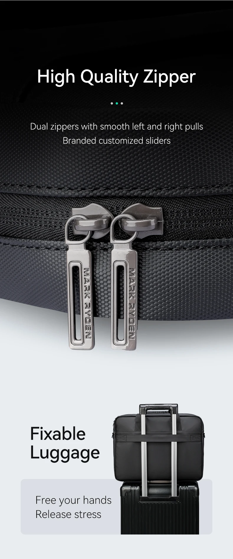 Struggling to fit all your essentials in one bag is a thing of the past. The Mark Ryden MR425 features a spacious 15.6-inch laptop compartment combined with intelligently arranged pockets, making organization an absolute breeze. From your tablet to notebooks and smaller tech gadgets, everything has its dedicated space. Additionally, the quick-access front pocket allows you to reach your frequently used items without a moment’s delay, saving you valuable time during your busy day. Stay organized, stay efficient.